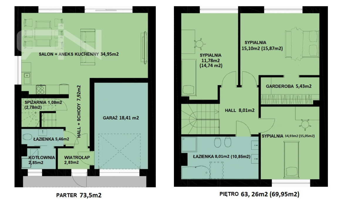 - Garaż w bryle budynku,