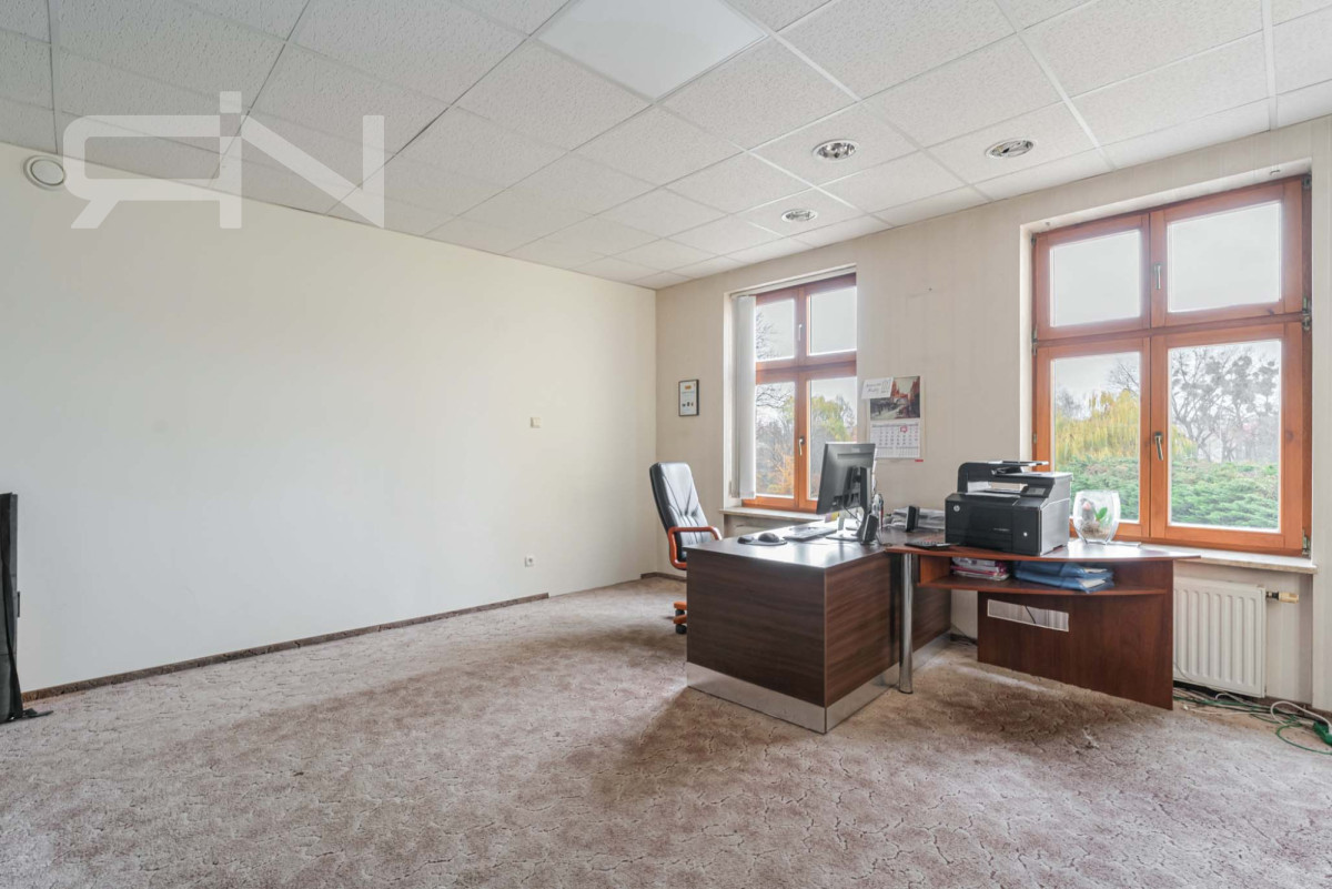 Reprezentacyjny budynek o powierzchni użytkowej 593,6 m² z podziałem na część usługową (431,4 m²) i mieszkalną (162,2 m²), składający się z trzech kondygnacji nadziemnych oraz z pełnego podpiwniczenia. Idealny zarówno do celów biznesowych, jak i mieszkalnych. Wysoki standard wykończenia - dworek całkowicie odrestaurowany w 2005 roku, z nowoczesnymi instalacjami (CO, wodno-kanalizacyjną, elektryczną, wentylacyjną, klimatyzacyjną, teletechniczną oraz domofonową). Obiekt wykonano w tradycyjnej technologii murowanej z cegły, a dach pokryto dachówką ceramiczną.