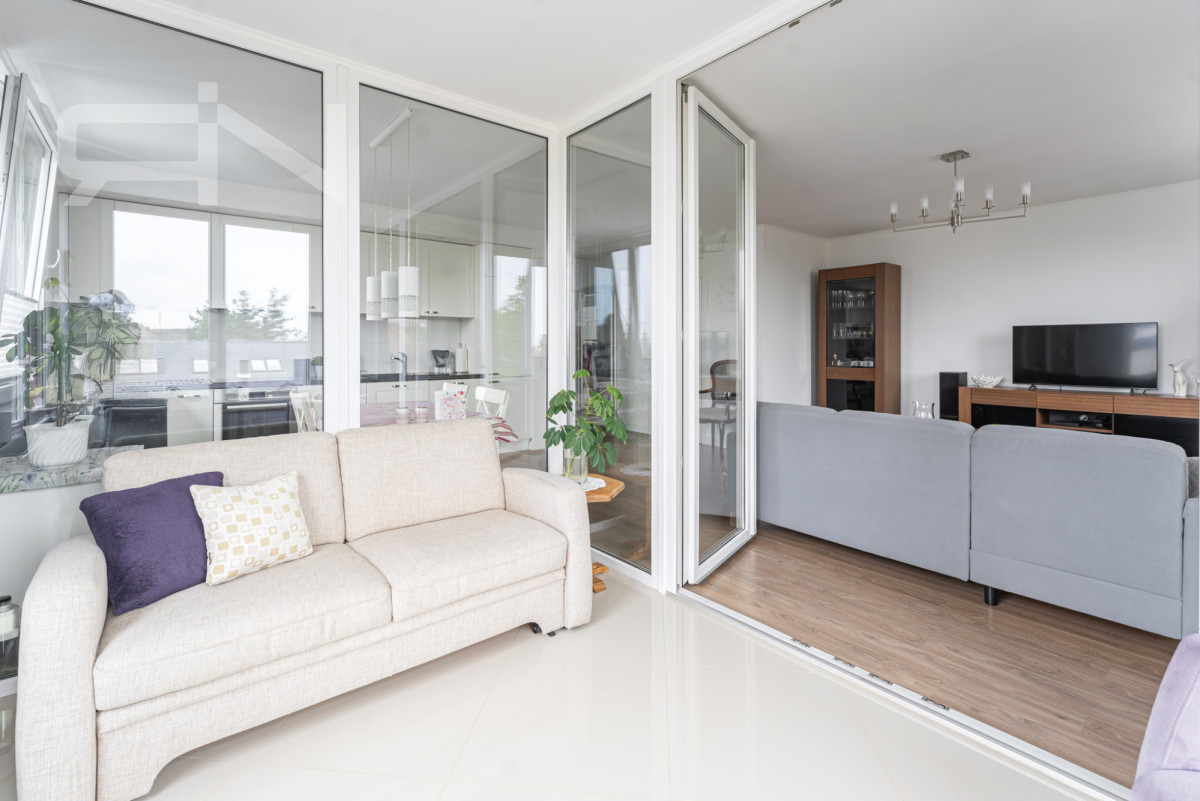 Apartament o powierzchni 76,1 m² usytuowany na trzecim (ostatnim) piętrze budynku. Składa się z przestronnego salonu z aneksem kuchennym (32,5 m²), dwóch sypialni (9,4 m² oraz 10,1 m²), łazienki (4,5 m²), dużego przedpokoju (8,1 m²), garderoby (2,8 m²) oraz werandy (8,7 m²), którą można zaaranżować na dodatkowy pokój.