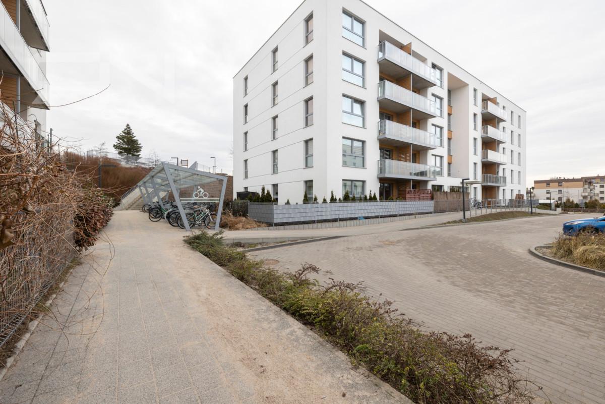 Osiedle zostało zaprojektowane z myślą o komforcie mieszkańców i oferuje zadbaną przestrzeń wspólną, dużo zieleni oraz plac zabaw dla dzieci. W pobliżu budynku znajdują się również miejsca do przechowywania rowerów oraz przestrzenie rekreacyjne dla mieszkańców.