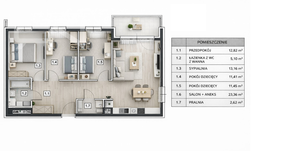 -funkcjonalny układ 4 pokoi idealny dla rodziny,