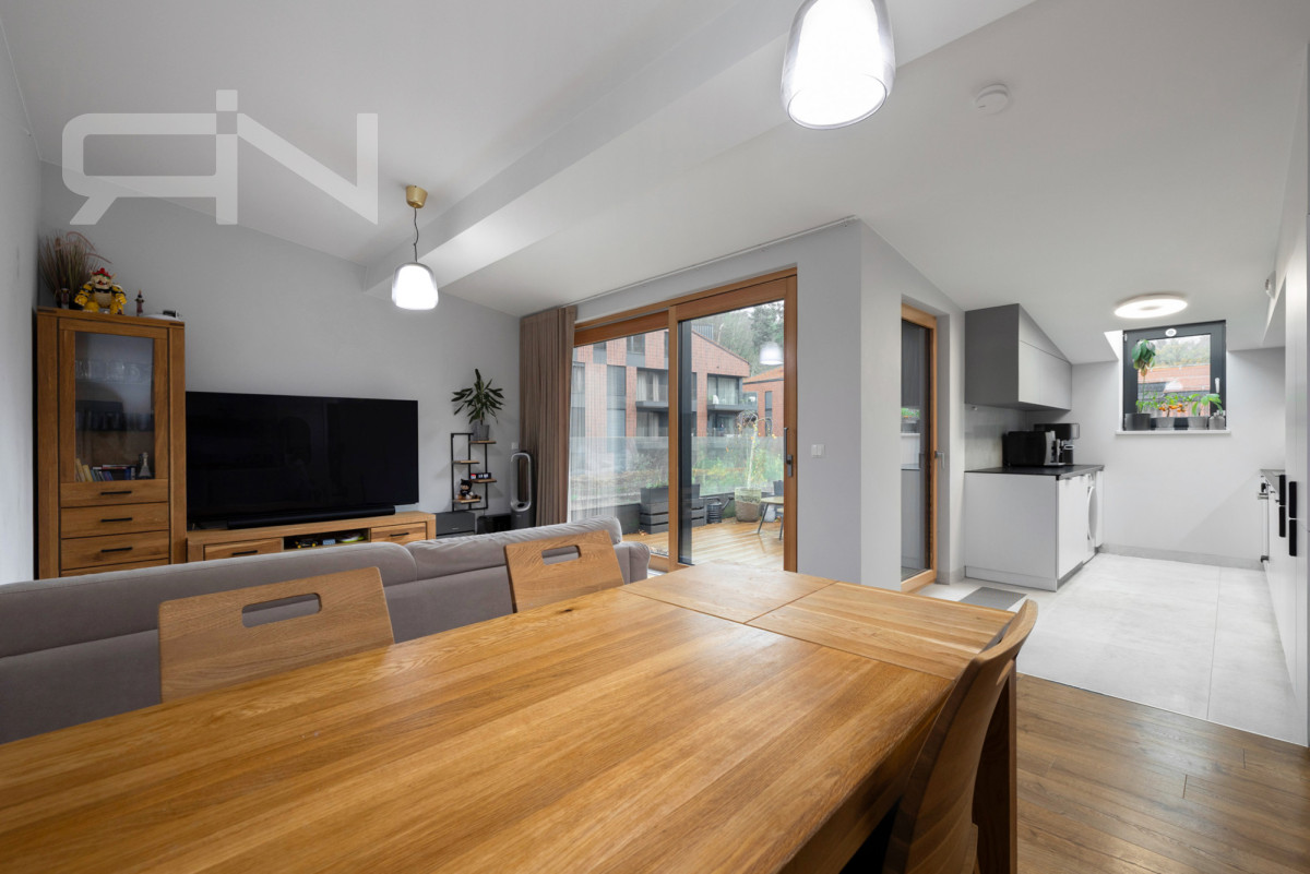 -kuchnia wyposażona(płyta indukcyjna Grundig, okap, piekarnik Grundig, zmywarka 80 Beko, lodówka Samsung, okap),
