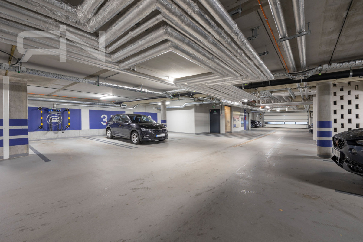 - W garażu stacja do ładowania aut elektryczych,