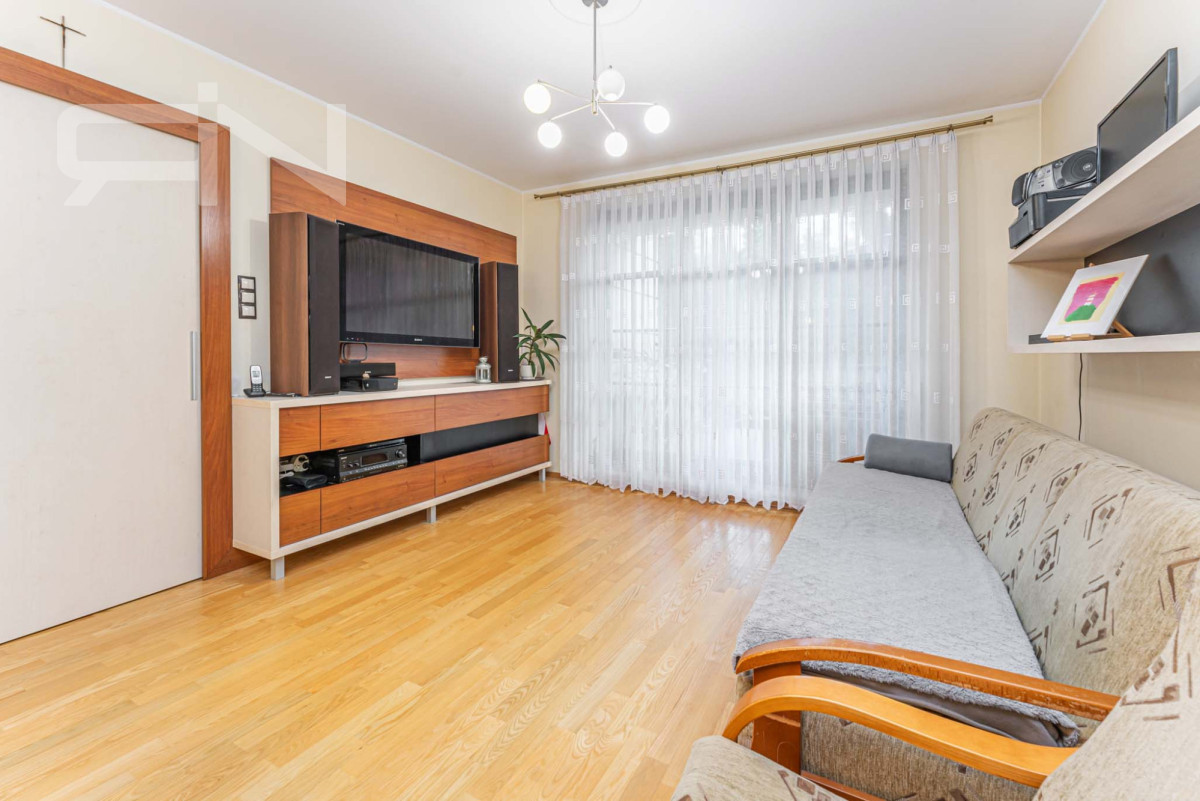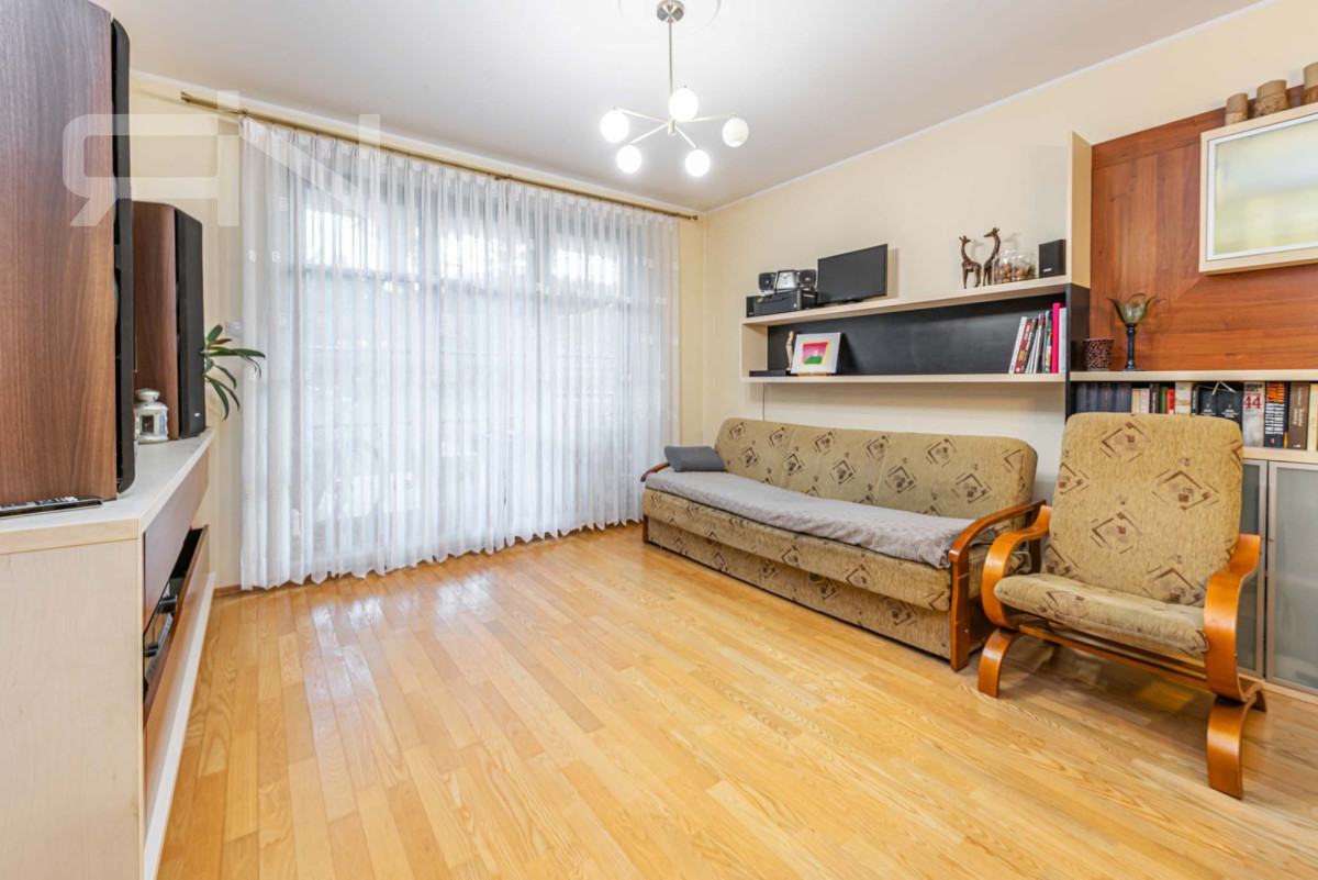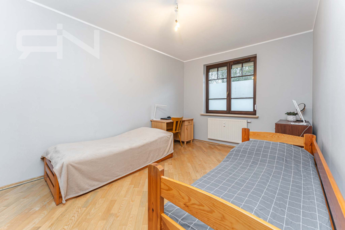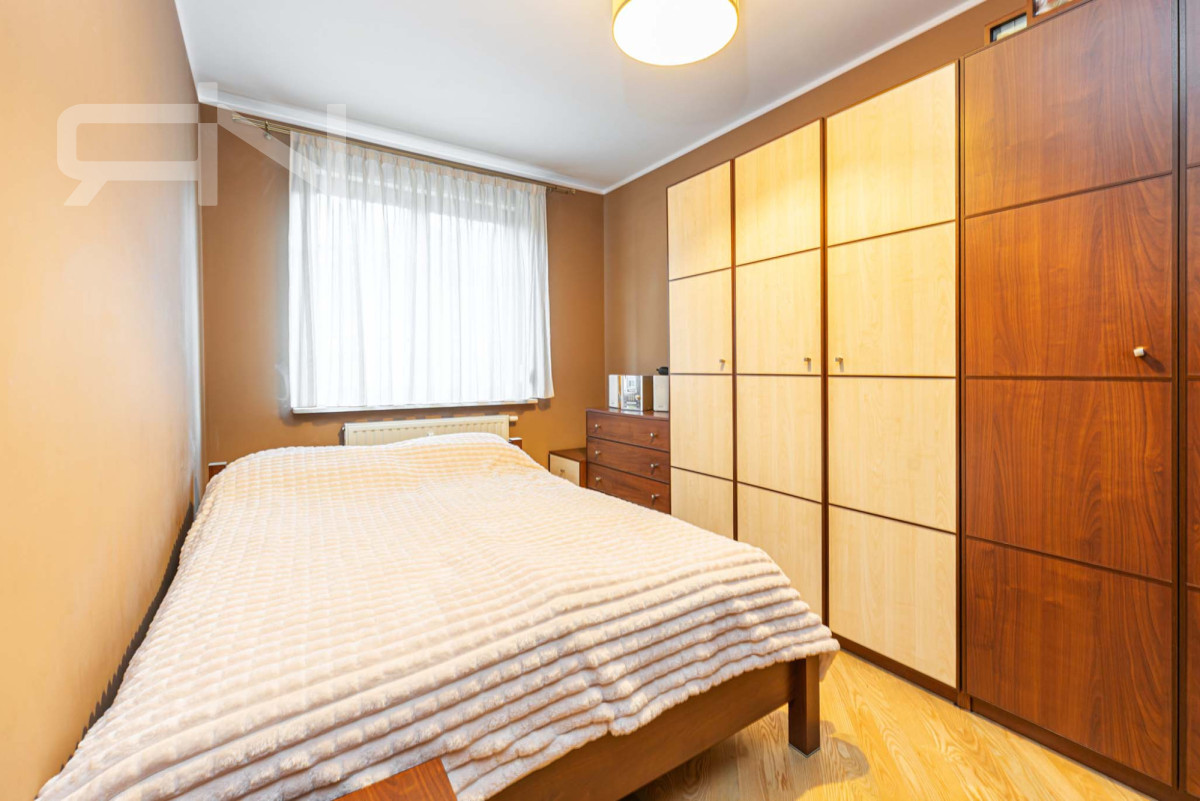 Mieszkanie o powierzchni 76,1m2 położone jest na parterze w dwupiętrowym apartamentowcu. W skład pomieszczeń wchodzą 3 pokoje, w tym dwie sypialnie, strefa dzienna z wyjściem do ogrodu. W pełni wyposażona, oddzielna kuchnia z oknem, przedpokój z pojemną szafą typu komandor, łazienka z oknem oraz oddzielne wc. W pokojach drewniana podłoga, reszta pomieszczeń wyłożona jest kaflami.