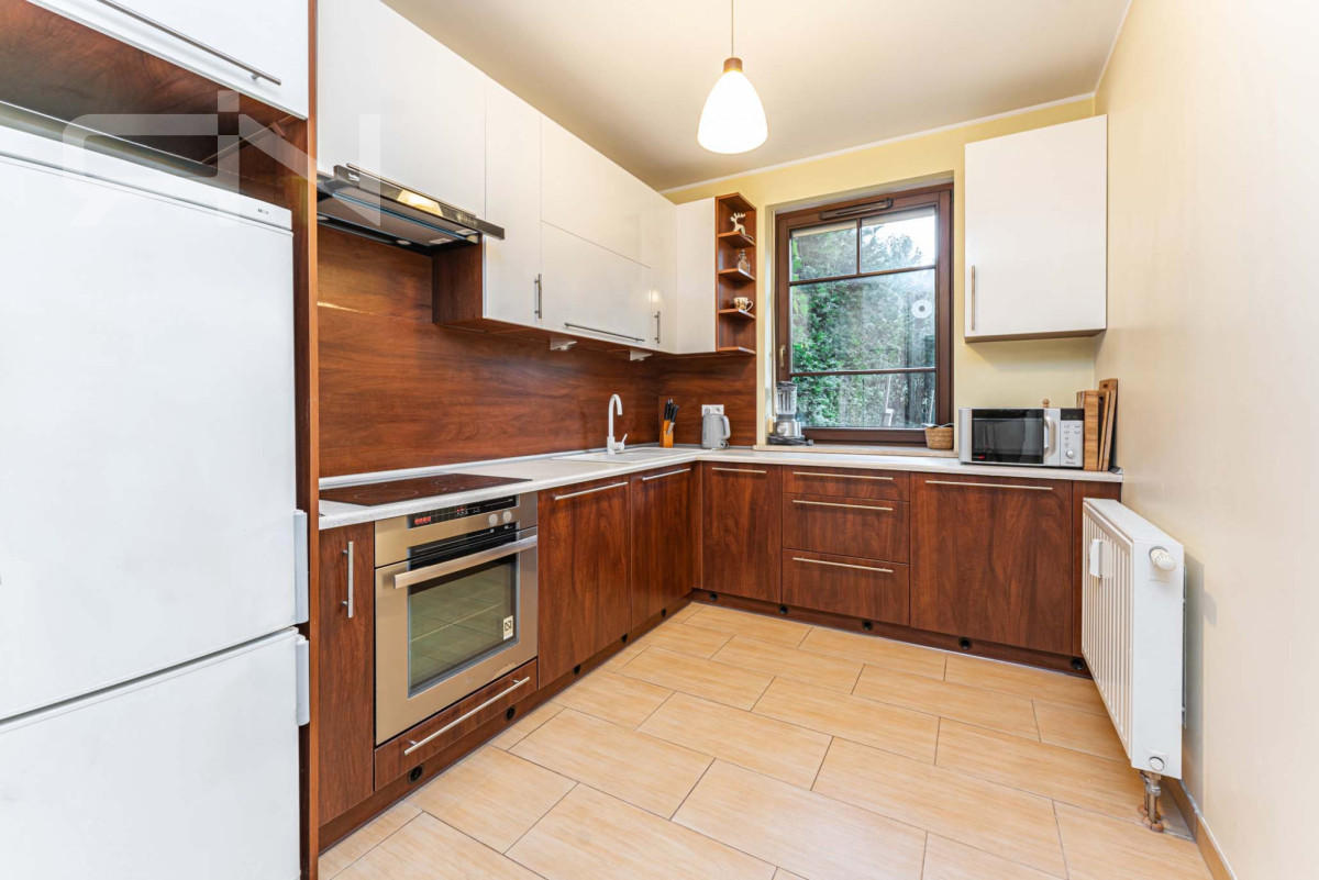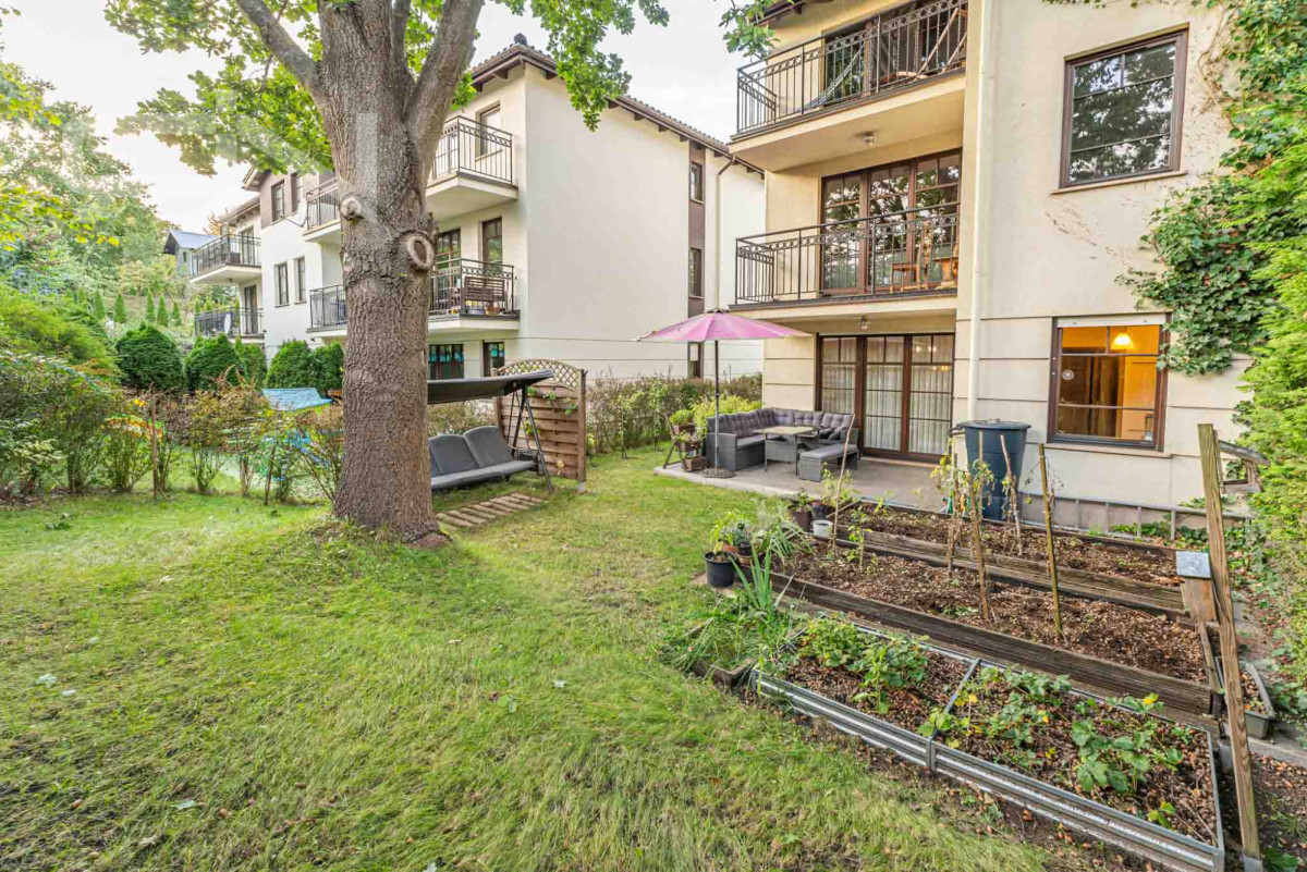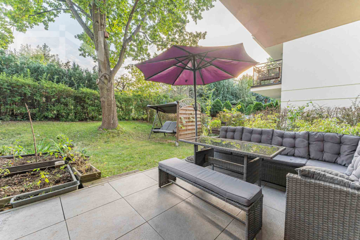 Ogród z prywatnym drzewem oraz licznymi nasadzeniami, które dają poczucie prywatności i spokoju. Taras wyłożony kaflami, na którym znajdują się meble do wypoczynku oraz parasol dający ukojenie w upalne dni. Termin wydania nieruchomości to 3 miesiące od zawarcia umowy sprzedaży.