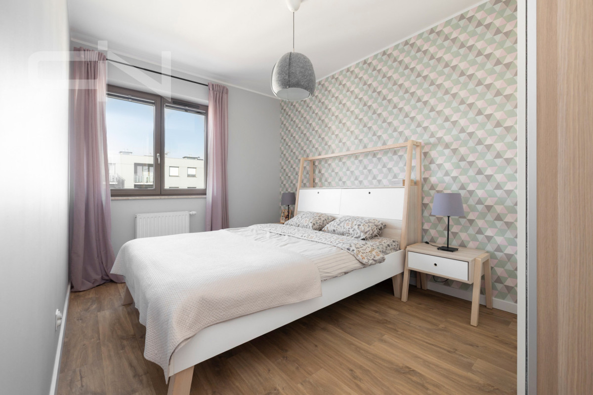 Nieruchomość znajduje się na 7 piętrze w 7-piętrowym budynku z windą. Powierzchni użytkowa to 62.17 m². Mieszkanie posiada bardzo funkcjonalny układ pomieszczeń, zostało wykończone z bardzo dobrej jakości materiałów. W skład pomieszczeń wchodzą : w pełni wyposażony salon, z którego mamy wyjście na spory balkon, dwie sypialnie, oddzielna kuchnia ze sprzętem AGD, łazienka z kabiną prysznicową oraz przedpokój z pojemną zabudową.