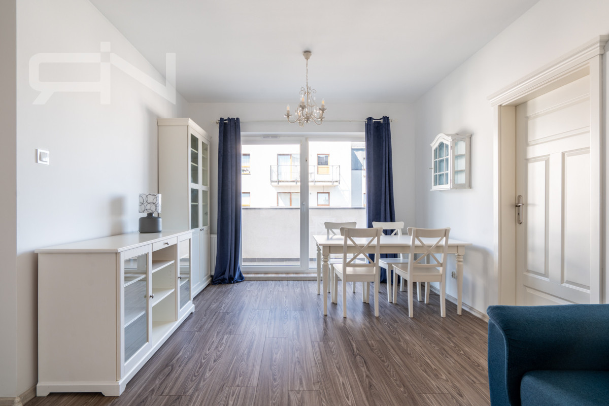 Mieszkanie o powierzchni 46 m2 posiada bardzo funkcjonalny układ. W skład pomieszczeń wchodzi pokój dzienny z wyjściem na balkon, sypialnia z zabudową wykonaną na wymiar, oddzielna, w pełni wyposażona kuchnia z oknem, łazienka z kabiną prysznicową oraz przedpokój z szafą w zabudowie. Całość wyposażenia zawarta w cenie lokalu.