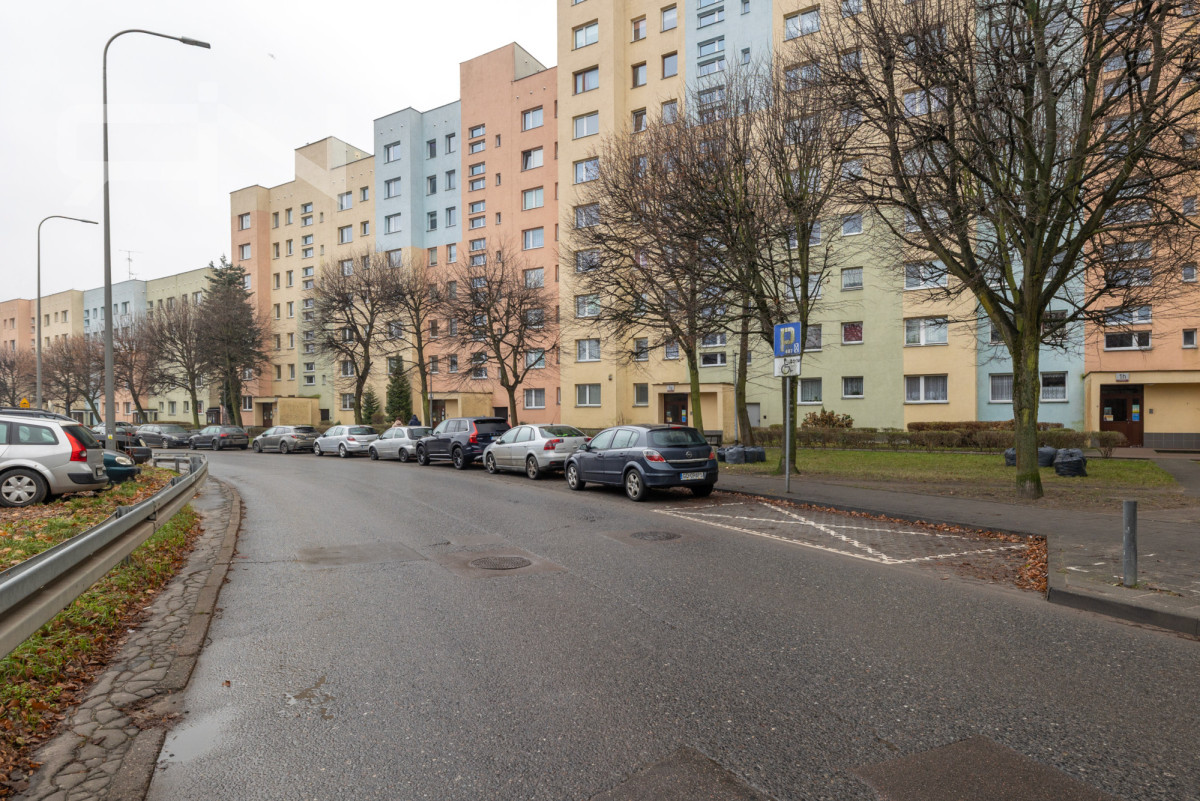 Mieszkanie mieści się w budynku wybudowanym w latach 80-tych XX wieku w technologii wielkiej płyty. Budynek zadbany, z odnowioną elewacją oraz odmalowanymi klatkami. Wejście do budynku zabezpieczone jest domofonem. Przed budynkiem znajdują się miejsca postojowe dla posiadaczy identyfikatorów.