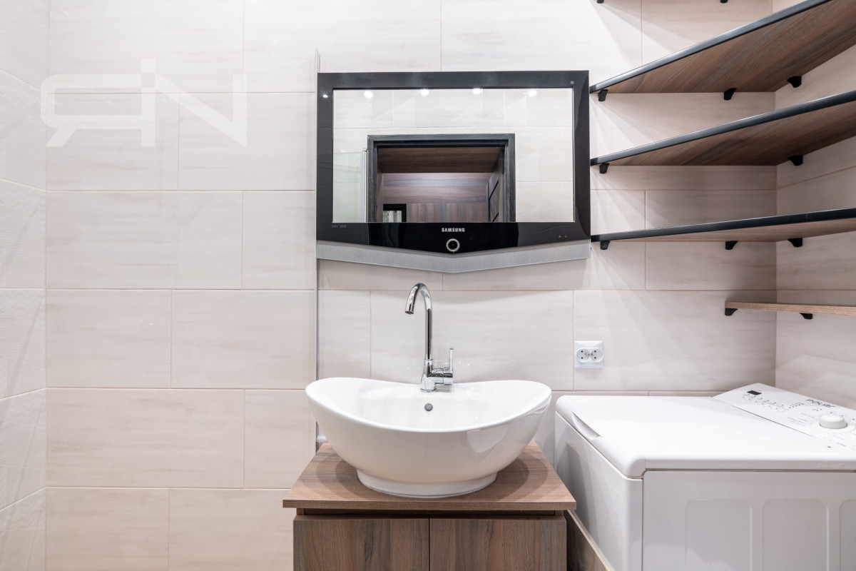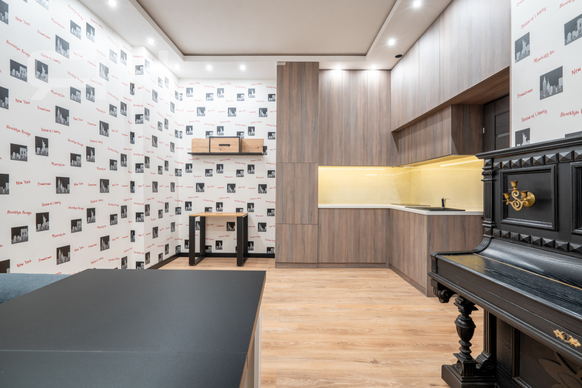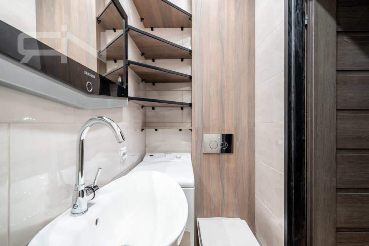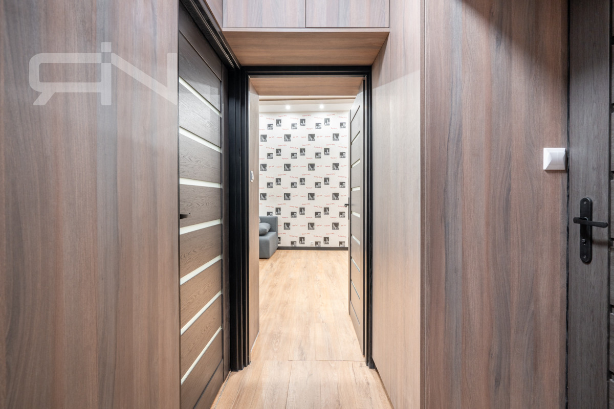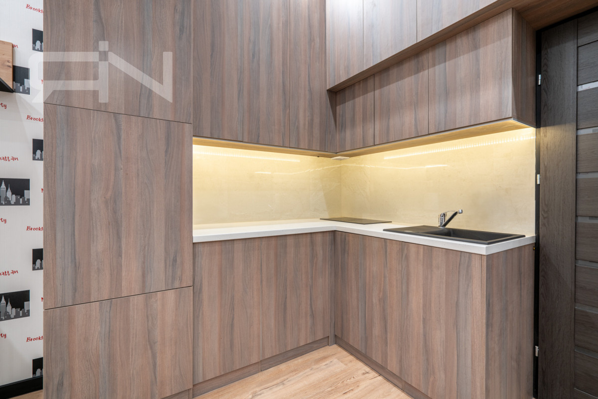 Kuchnia na wymiar oraz bardzo pojemna zabudowa w przedpokoju. Mieszkanie o łącznej powierzchni 24m2, składa się z pokoju dziennego z aneksem kuchennym, łazienki oraz przedpokoju.