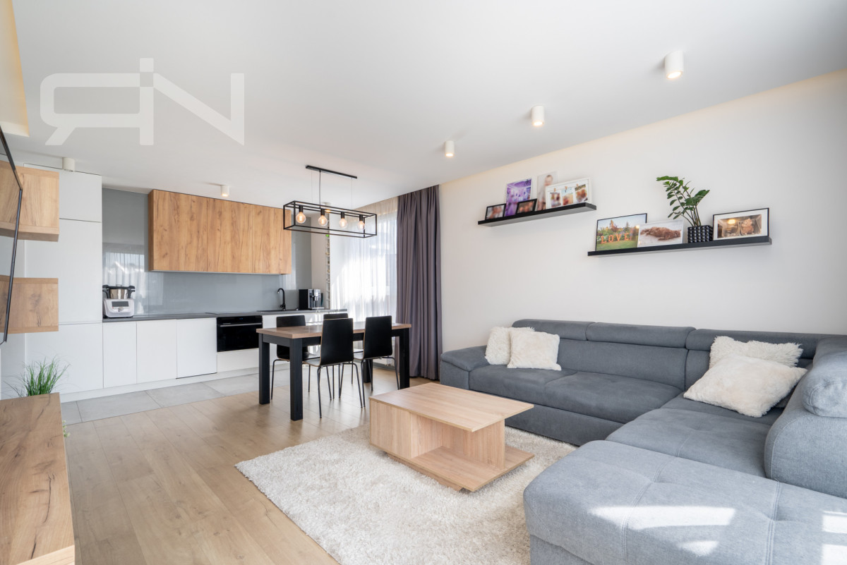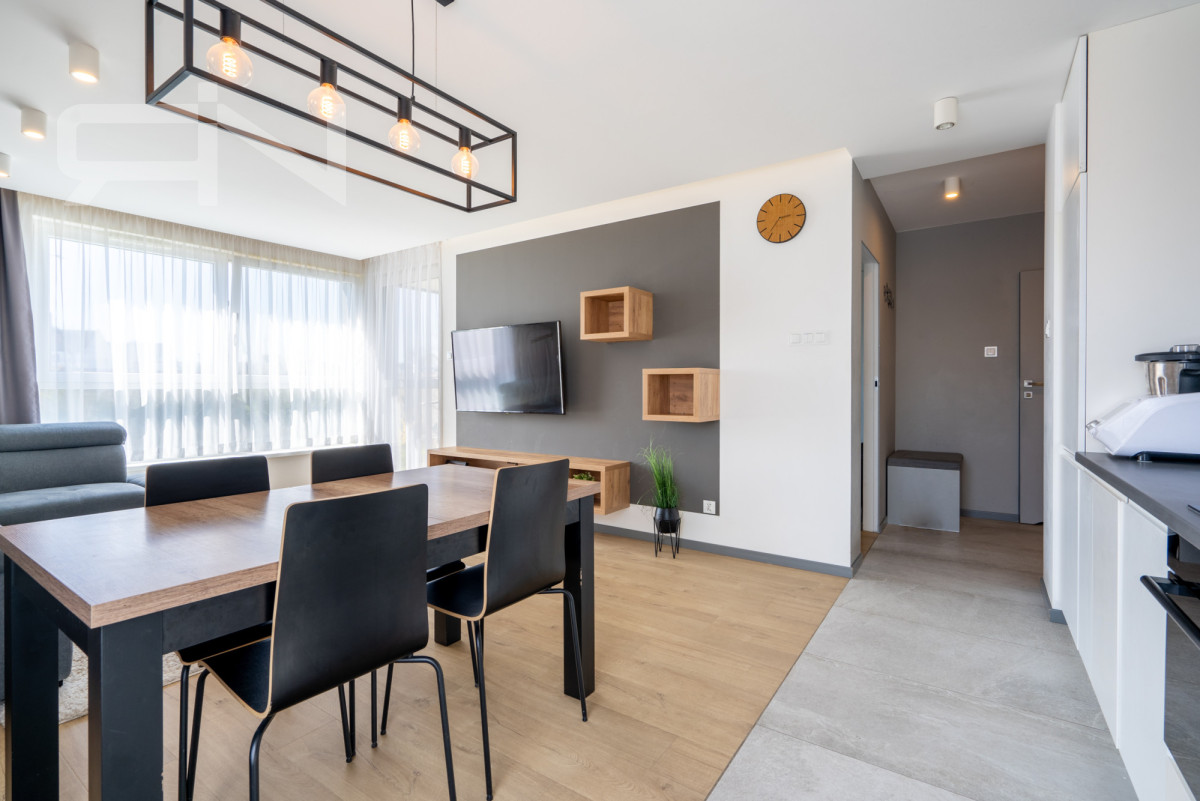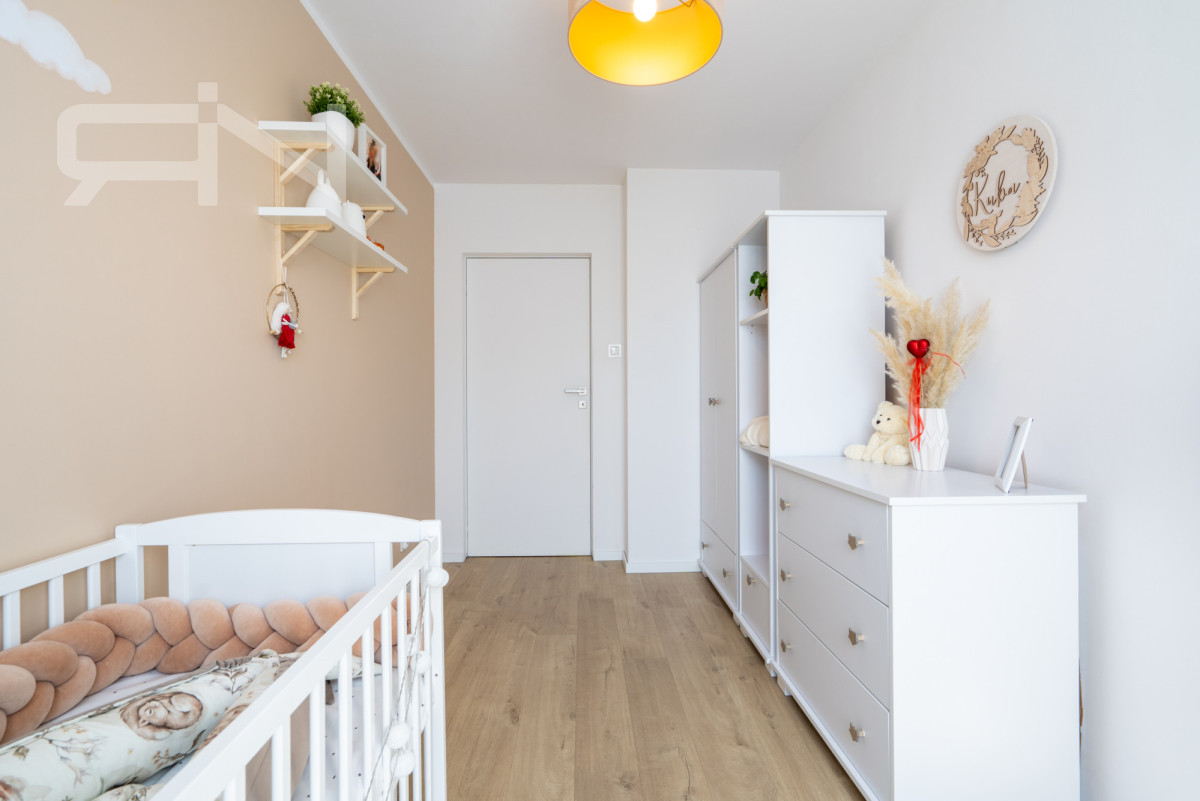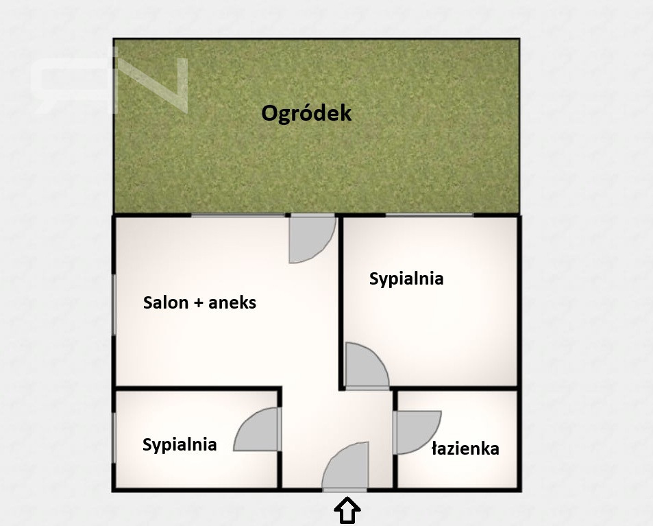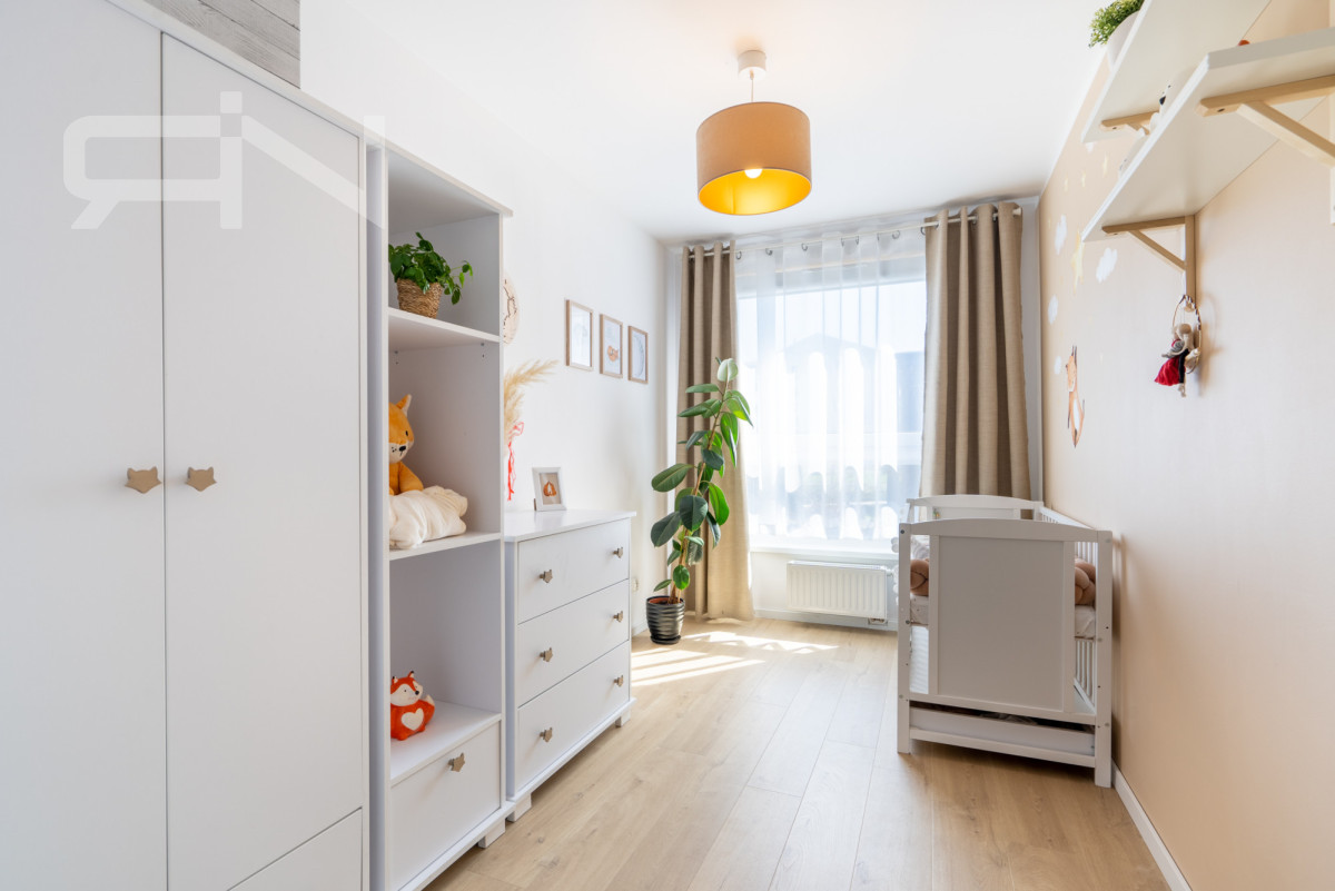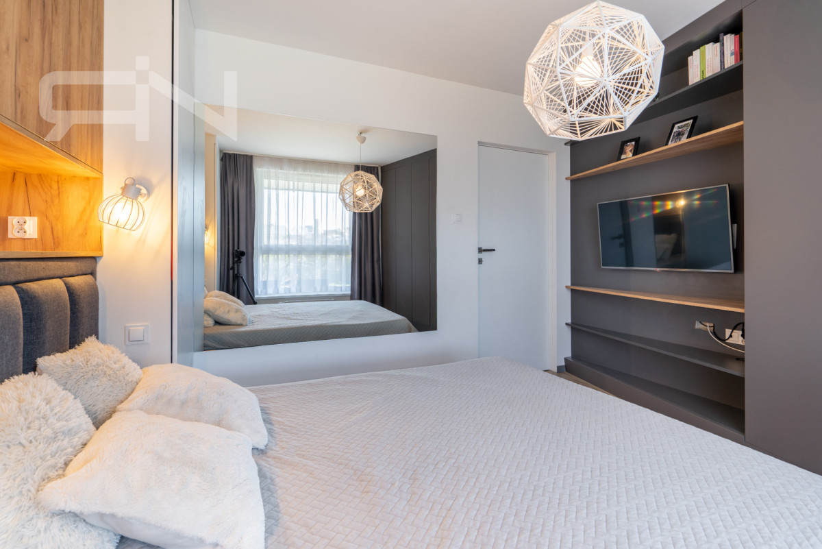 Salon połączony z aneksem kuchennym z którego mamy wyjście na taras oraz ogródek, łazienka, dwie ustawne sypialnie, przedpokój. Łazienka z prysznicem.