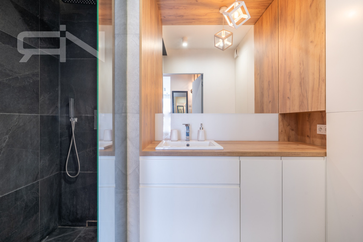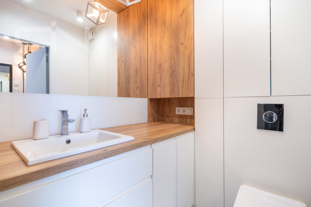 Zabudowa kuchenna wykonana na wymiar, została wyposażona w bardzo dobrej jakości sprzęt AGD.