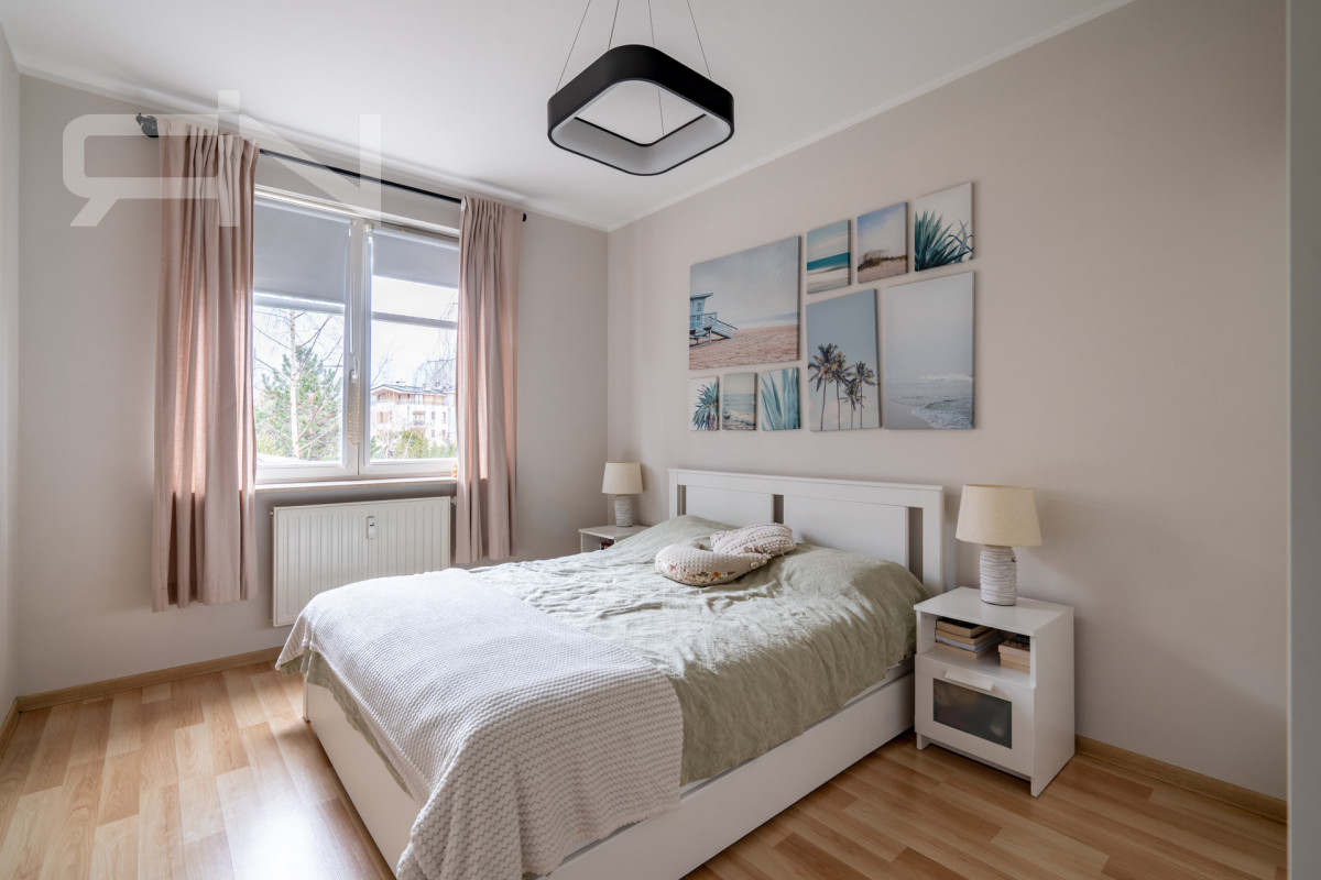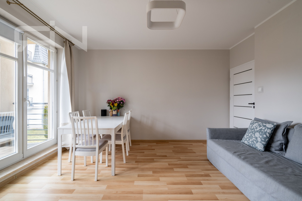 Mieszkanie znajduje się na 1. piętrze w nowoczesnym budynku na terenie zamkniętego osiedla Parkur.