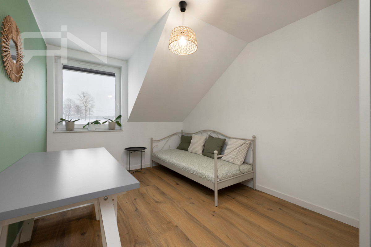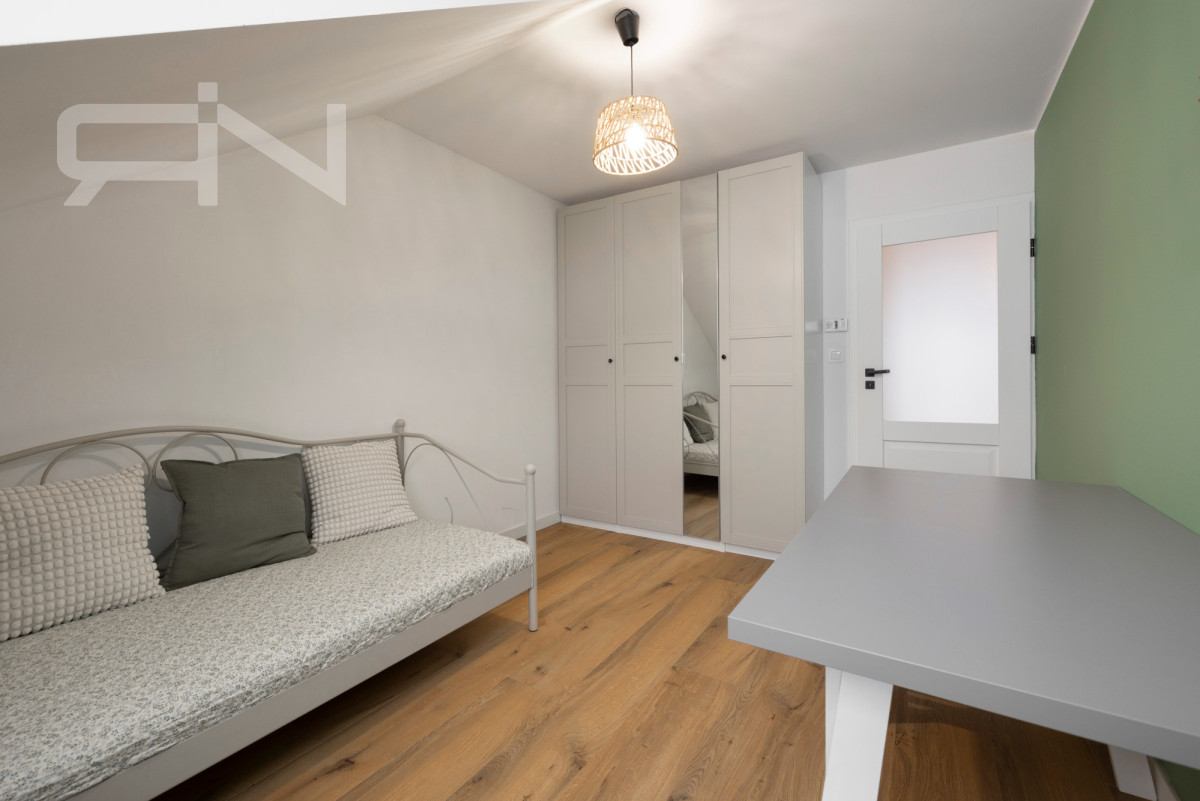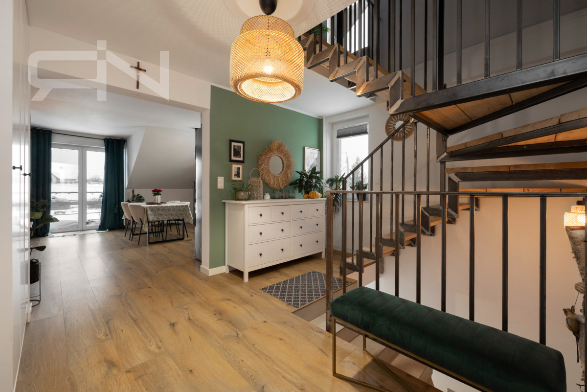 Bezczynszowy lokal mieszkalny w nowoczesnym budynku, 3-kondygnacyjny, z bezpośrednim wejściem z prywatnego ogrodu o powierzchni ok. 300 m². Mieszkanie wyposażone w 3-szybowe okna firmy DRUTEX, co za tym idzie lepsza izolacja cieplna oraz bardzo dobra izolacja akustyczna. Parapety z konglomeratu. Wejście przez bramkę marki Wiśniowski. Budynek z gazobetonu docieplony styropianem 20 cm. Dach pokryty dachówka betonową i docieplony wełną mineralną o grubości 30 cm. Woda miejska oraz podłączenie do sieci kanalizacyjnej.