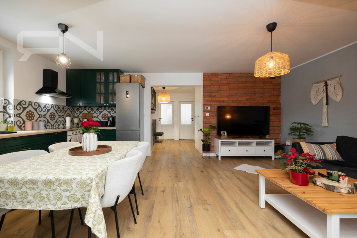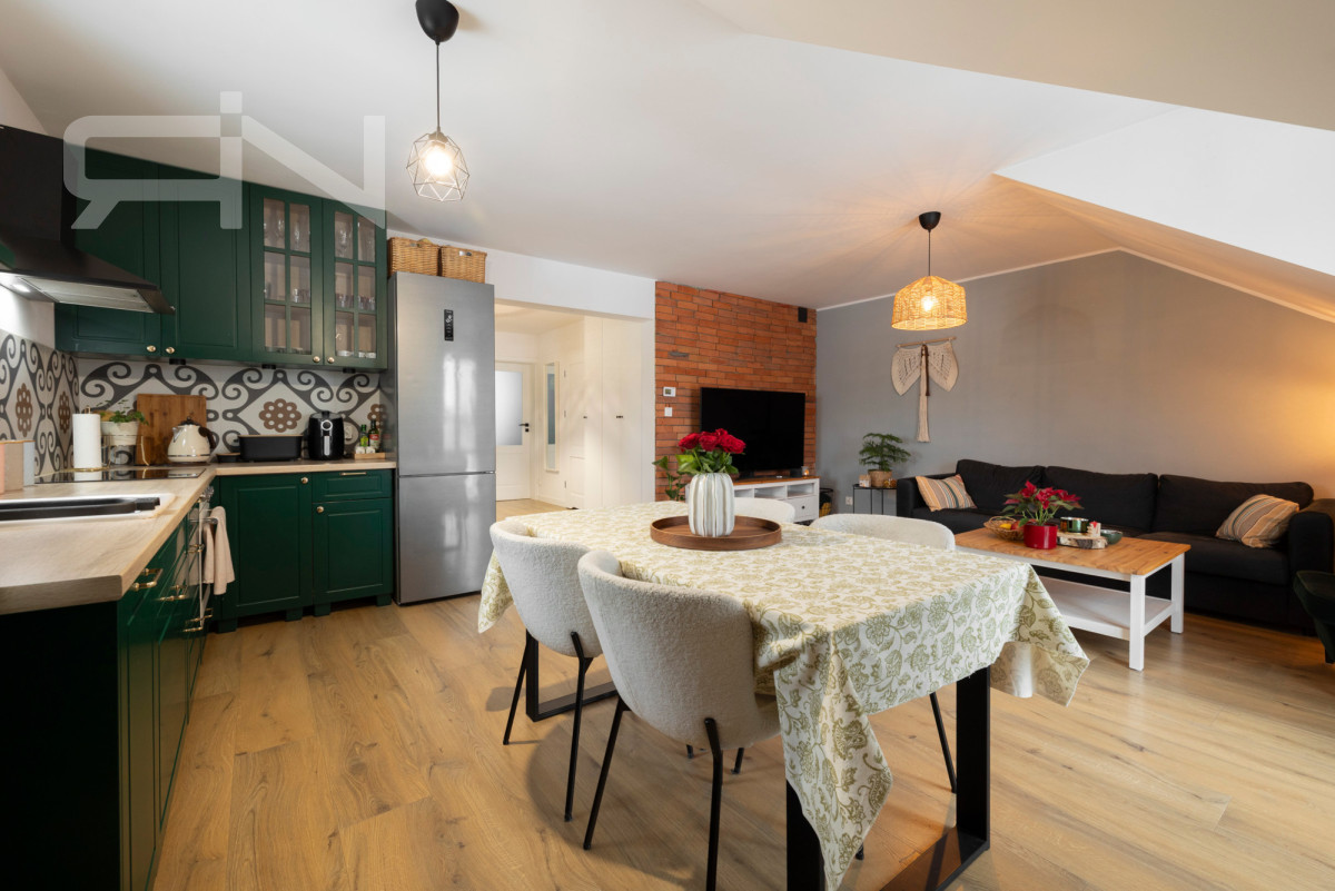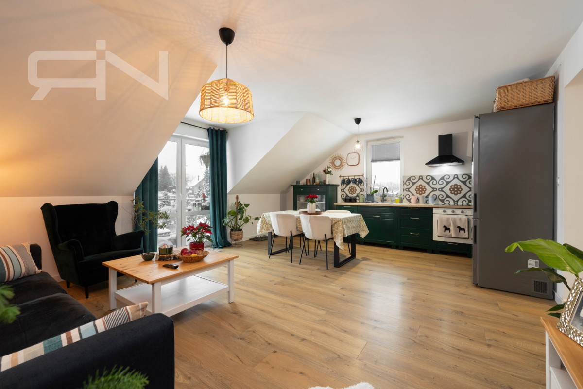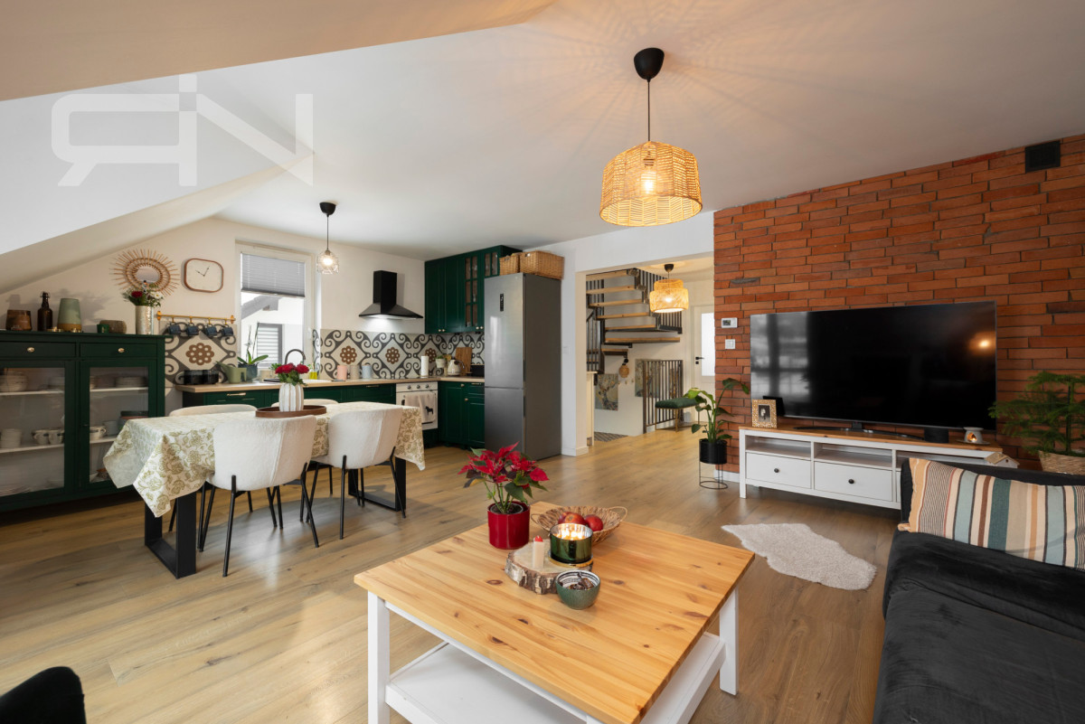 Bezczynszowy lokal mieszkalny w nowoczesnym budynku, 3-kondygnacyjny, z bezpośrednim wejściem z prywatnego ogrodu o powierzchni ok. 300 m². Mieszkanie wyposażone w 3-szybowe okna firmy DRUTEX, co za tym idzie lepsza izolacja cieplna oraz bardzo dobra izolacja akustyczna. Parapety z konglomeratu. Wejście przez bramkę marki Wiśniowski. Budynek z gazobetonu docieplony styropianem 20 cm. Dach pokryty dachówka betonową i docieplony wełną mineralną o grubości 30 cm. Woda miejska oraz podłączenie do sieci kanalizacyjnej.
